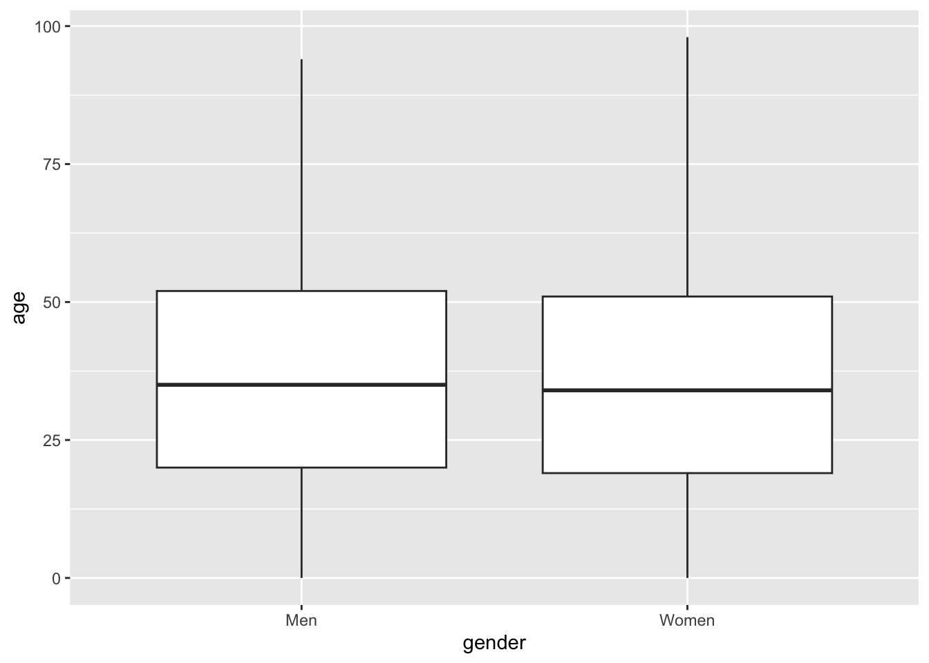 nuk_latest %>%ggplot(aes(x = gender, y = age)) +geom_boxplot()